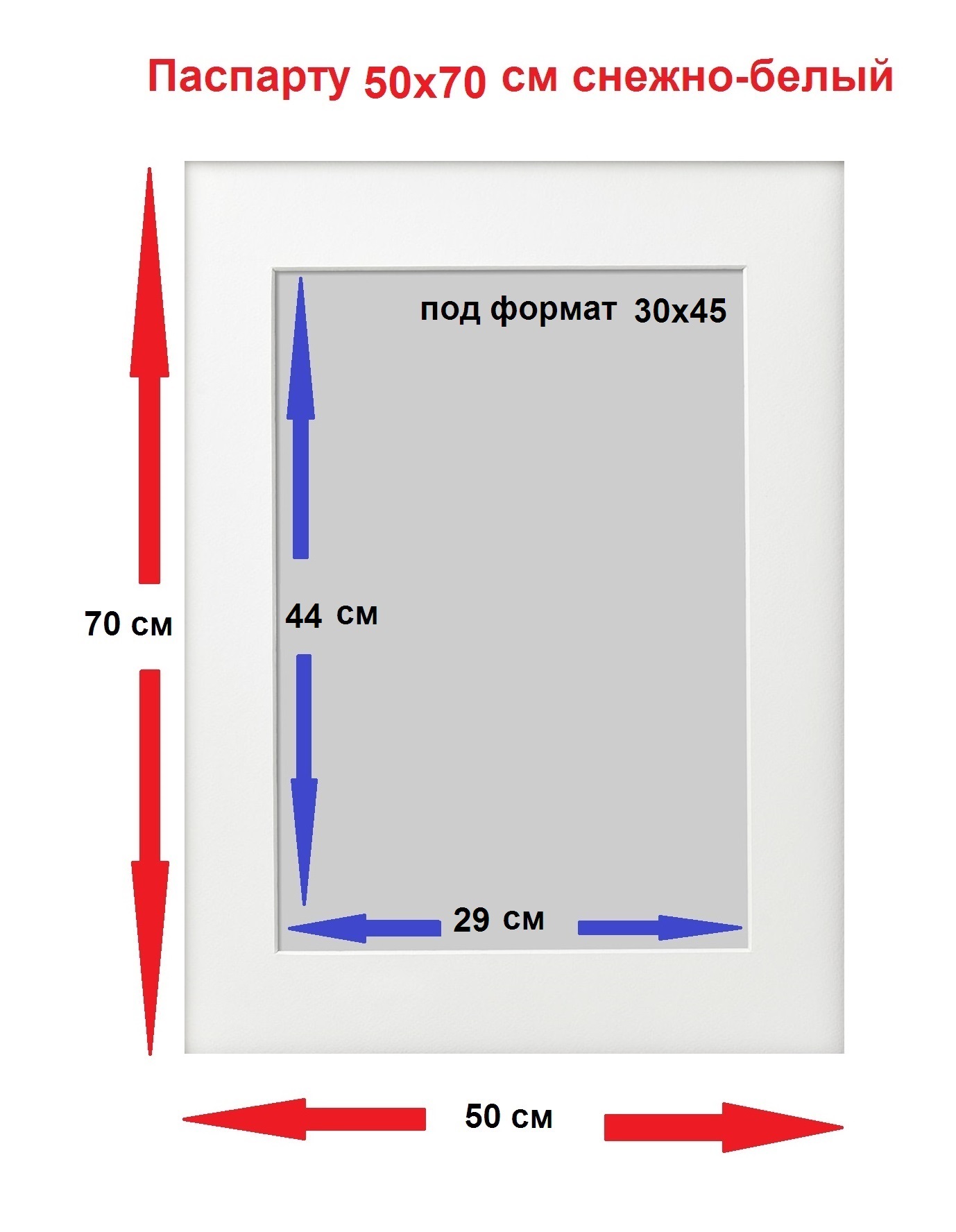 Паспарту снежно белый 50x70 под формат (30х45) 1 шт.
