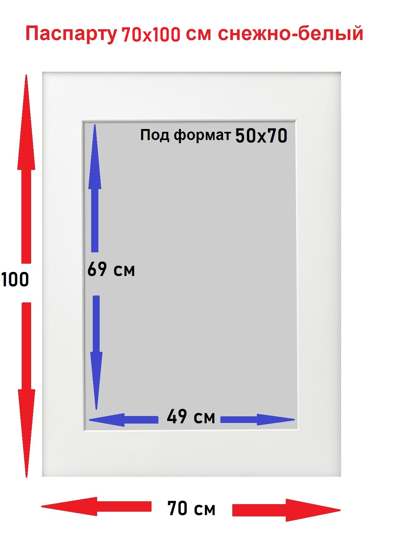 Паспарту снежно белый 70*100 под формат 50*70 1 шт.