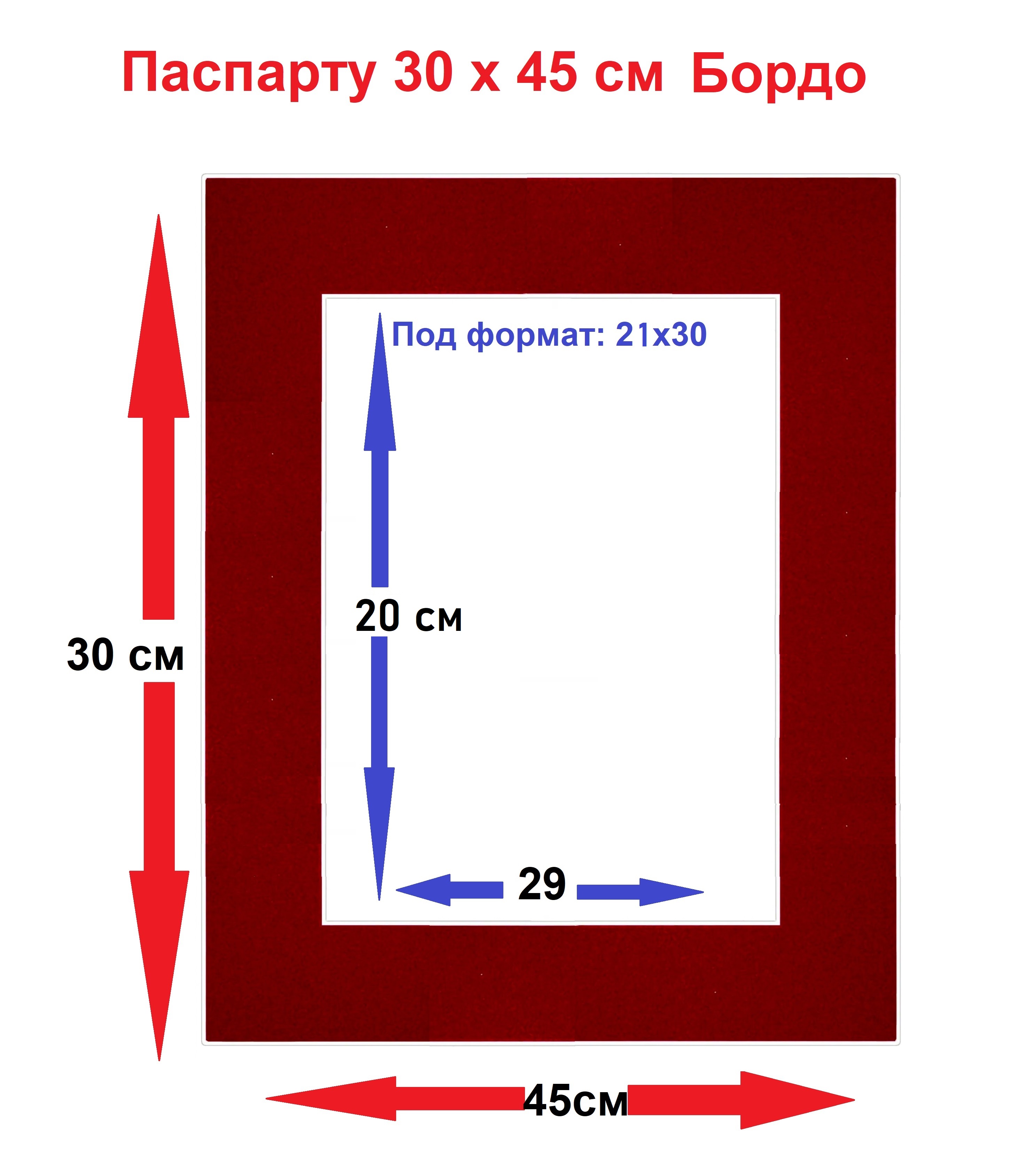 Паспарту бордо 30*45 / Окно 21*30 см 1 шт.